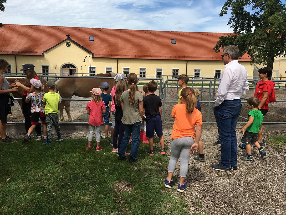 Egal ob Sonnenschein oder Regen, die Kinder im Alter von 5-12 Jahren hatten von Montag bis Freitag, jeweils von 07:30 bis 16:30 Uhr, die Möglichkeit, verschiedene Sportarten und Bewegungsspiele auszuprobieren und sich so besser kennenzulernen. So manche Freundschaften wurden in dieser Woche geschlossen, nicht nur zwischen Zweibeinern. Auch die vierbeinigen Gefährten waren sehr beliebt bei den jungen Teilnehmerinnen und Teilnehmern und der Umgang mit den Tieren wurde vom Team des Reitclubs Stadl-Paura auf spielerische Weise erklärt. Dafür möchten wir uns als ASVÖ Oberösterreich beim Obmann des Reitclubs, Johannes Mayrhofer, und seinem Team recht herzlich für die spannende und schöne Ferienwoche bedanken!