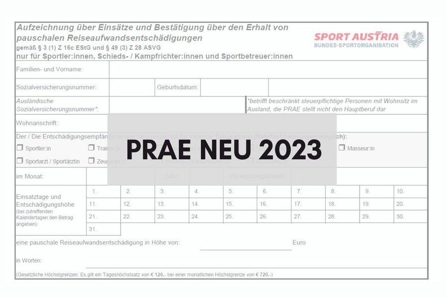 Das Formular PRAE 2023 sowie den Entwurf für das Meldeformular finden Sie auf der Sport Austria Website oder auf der ASVÖ OÖ Homepage unter Downloads.
