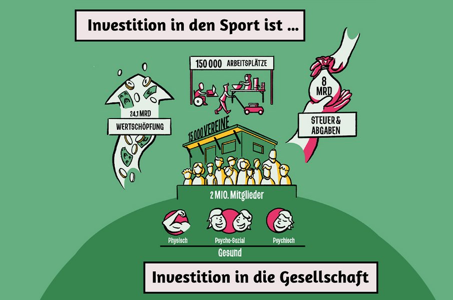 Mit einer beeindruckenden Wertschöpfung von 24,1 Milliarden Euro und 357.000 Arbeitsplätzen stärkt der Sport unser Land auf vielfältige Weise. Darüber hinaus trägt er jährlich acht Milliarden Euro an Steuer- und Abgabenaufkommen bei und spart dem Gesundheitssystem 530 Millionen Euro ein. Diese Einsparungen könnten noch größer sein, wenn dem Sport ein höherer Stellenwert beigemessen würde.